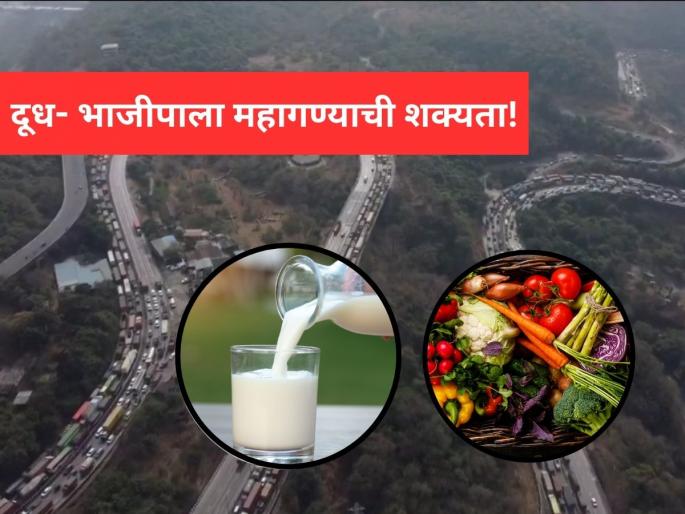 Web Summary : मुंबई-पुणे एक्सप्रेसवे पर यातायात जाम से मुंबई और ठाणे में दूध और सब्जी की आपूर्ति बाधित। दूध की आपूर्ति 50% तक गिरने की आशंका। सब्जी और फलों की डिलीवरी में देरी, माल नहीं बिका। प्याज के ट्रक फंसे, व्यापार प्रभावित। कीमतें बढ़ने की आशंका।