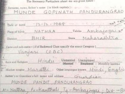 मुंडेंच्या एलएलबी प्रवेश अर्जावर १२ डिसेंबरच जन्मतारीख