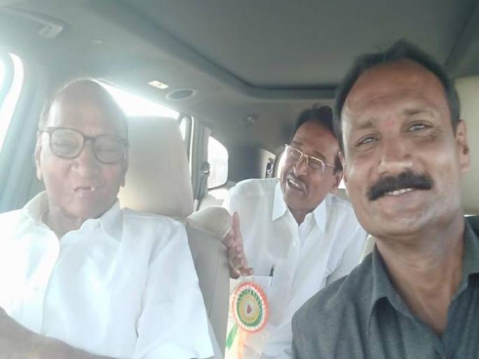 अखेर, हॅलिपॅडवर उतरल्यानंतर प्रताप पाटील यांच्या गाडीत शरद पवार बसले. त्या गाडीत पवार यांच्यासमवेत आमदार दिलीप सोपल आणि माजी आमदार दिपक साळुंके हेही होते. अनेक दिवसांपासूनची आपली इच्छा आणि स्वप्न पूर्ण झाल्याचा आनंद आता प्रताप पाटील यांच्या चेहऱ्यावर दिसत होता. तो आनंद सेल्फीत कैद तर व्हायलाच पाहिजे ना. कारण, ''आपल्या साहेबांच्या साहेबांचा वाहक बनण्याचं अन् आपल्या नेत्याच्या नेत्याचं सारथ्य करण्याचं भाग्य पाटील यांना लाभलं होतं''. साहजिकच, पाटील यांनी शरद पवारांकडे सेल्फी घेण्याचा अन् माझं स्वप्न पूर्ण झाल्याचं बोलून दाखवलं.