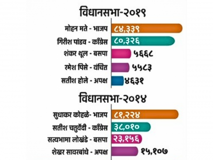 २०१४ मध्ये भाजपचे सुधाकर कोहळे जायंट किलर ठरले. त्यांनी काँग्रेसचे बडे नेते सतीश चतुर्वेदी यांना तब्बल ४३ हजार २१४ मतांनी मात दिली. पण २०१९ मध्ये भाजपने कोहळे यांचे तिकीट कापले व मोहन मते यांच्यावर विश्वास दाखविला.