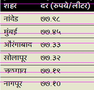 राज्य सरकारने आकारलेल्या अधिभारामुळे नांदेड शहरात पेट्रोल खरेदीसाठी सर्वाधिक दर आकारले जात असले, तरी मुंबई, औरंगाबाद, सोलापूर, जळगाव, नागपूर या शहरांतील पेट्रोलचे दरही प्रति लीटर ७७ रुपयांवर गेले आहेत. नव्या दरवाढीनंतर या