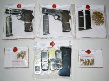नाशिक : अहमदनगरमधील कुविख्यात चन्या बेग टोळीतील गुंड व खतरनाक शार्पशूटर तथा न्यायालयातून पोलिसांच्या हातावर तुरी देऊन फरार झालेला शाहरूख रज्जाक शेख व त्याच्या दोन साथीदारांना अहमदनगर स्थानिक गुन्हे शाखा व नाशिक शहर पोलीसांनी रविवारी (दि़२२) पहाटे सापळा रचत पाथर्डी फाटा परिसरातून जेरबंद केले़ या तिघांकडून दोन विदेशी बनावटीची पिस्तूल, ४० जिवंत काडतूसे जप्त करण्यात आली आहे़ शहरात मोठे कांड करण्याचा कट या तिघांनी रचला होता मात्र त्यांना वेळीच जेरबंद करण्यात आल्याने मोठा अनर्थ टळला आहे़ दरम्यान, पाथर्डी फाटा परिसरात अतिरेकी पकडल्याचा संदेश सोशल मीडीयावरून व्हायरल झाल्यानंतर अतिरेकी नसून सराईत गुन्हेगार असल्याचा खुलासा पोलिसांनी केला़
