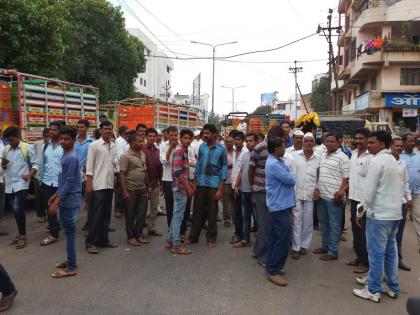 मालवाहू वाहनाची चावी काढल्याने शेतकºयांचे चक्काजाम !