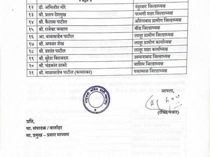 कारवाई करण्यात आलेल्या पदाधिकाऱ्यांची नावं पुढील प्रमाणे आहे.