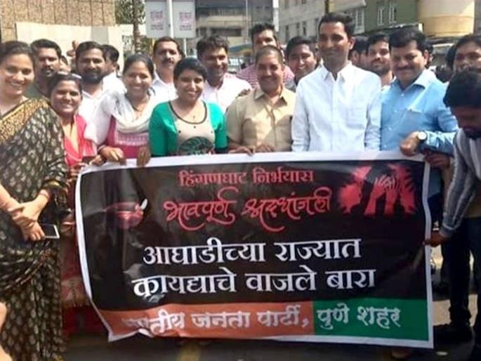 हिंगणघाट येथील जळीतकांडाचा बळी ठरलेल्या महाराष्ट्राच्या लेकीबाबत भाजपा किती असंवेदनशील आहे, हेच त्यांच्या एका आंदोलनावरून उघड झालेय. हिंगणघाट घटनेचा निषेध करून सरकारकडे बोट दाखवण्यासाठी निषेध मोर्चा काढण्याचे नाटक भाजपाचे माजी आमदार जगदीश मुळीक यांनी केले. या मोर्चात सामील झालेले भाजपाचे पदाधिकारी आणि खुद्द माजी आमदार मात्र हसत हसत फोटो काढून घेण्यात व्यस्त होते, असा आरोप राष्ट्रवादीकडून करण्यात आला आहे.