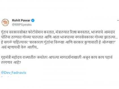 रोहित पवार यांनी या अशा घटनांवरून राज्यातील सरकारवर आणि देवेंद्र फडणवीस यांच्यावर जोरदार हल्लाबोल केला आहे. "हे सगळं पाहिल्यावर ‘सरकारला गुंडांचा विळखा आणि सरकार कुणासाठी हे ओळखा?’ असं म्हणायची वेळ आलीय..." असं म्हणत निशाणा साधला आहे. तसेच "गृहमंत्री महोदय राज्यातील जनतेला आपल्या मागदर्शनाखाली अजून काय काय पाहावं लागणार आहे?" असा खोचक सवाल देखील विचारला आहे.