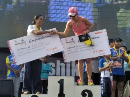 १० कि.मीमध्ये खुल्या पुरूष गटात अतुल चौधरी (प्रथम) तर महिला वर्गात पूजा शिरोडे यांनी बाजी मारली. तसेच १० कि.मीच्या गटात ज्येष्ठ प्रवर्गात पांडुरंग पाटील हे प्रथम तर विजय शिंपी यांनी द्वितीय क्रमांक पटकाविला. तसेच जेष्ठ महिलांमध्ये शोभा देसाई प्रथम तर अर्जेंटिना लीना यांनी द्वितीय क्रमांक मिळविला. तसेच पाच किलोमीटरच्या स्पर्धेत सहभागी स्पर्धकांनाही पदक प्रदान करण्यात आले.