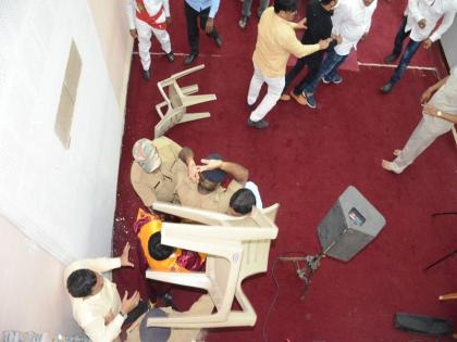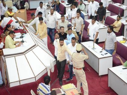 यातच एमआयएम नगरसेवक राजदंड पळवण्यासाठी पुढे आल्यान सुरक्षारक्षक पुढे सरसावले. त्यावेळी एमआयएम नगरसेवक सय्यद मतीनं आणि जफर बिल्डर यांनी त्यांना पाठीमागे लोटत खुर्च्या फेकल्या. झटपट सूरु असताना महापौर आसन सोडून सुरक्षा रक्षकाकडे गेले असता फेकलेली खुर्ची त्याच्या अंगावर पडली.
