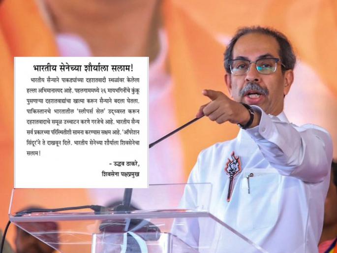 प्रसिद्धी पत्रकाच्या माध्यमातून ऑपरेशन सिंदूरचं कौतुक करताना उद्धव ठाकरे म्हणाले की, भारतीय सैन्याने पाकिस्तानच्या दहशतवादी तळांवर केलेला हल्ला अभिमानास्पद आहे. पहलगाममध्ये २६ मायभगिनींचे कुंकू पुसणाऱ्या दहशतवाद्यांचा खात्मा करून सैन्याने बदला घेतला. आता पाकिस्तानचे भारतातील स्लिपर्स सेल उद्ध्वस्त करून दहशतवादाचे समुळ उच्चाटन करणे गरजेचे आहे, असेही या पत्रकात उद्धव ठाकरे म्हणाले.