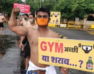 दारू महत्त्वाची की जीम : अर्धनग्न मूकमोर्चाद्वारे वेधले लक्ष