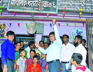 विद्यार्थ्यांची शाळेत दिमाखात एंट्री; वाद्यसंगीत, पुष्पांनी स्वागत