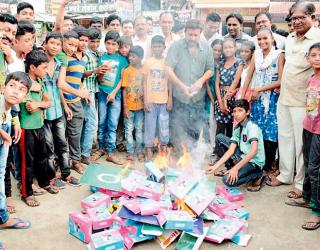 आर्वीत चिनी वस्तूंची होळी करून नोंदविला निषेध
