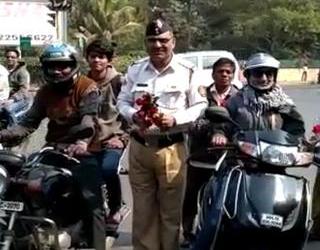 हेल्मेट वापरणाऱ्याना पोलिसांकडून 'गुलाब’