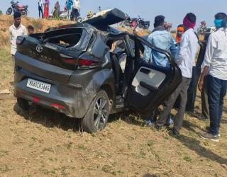 टायर फुटल्याने कार उलटली; आईचा मृत्यू; मुलगा, सून जखमी