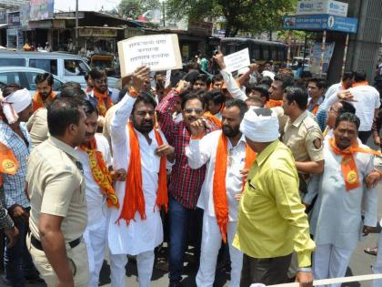 लातुरात दानवे यांच्या फोटोला जोडे मारून सेनेने केला निषेध