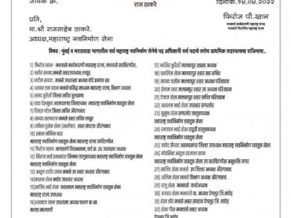 मनविसेचे सरचिटणीस फिरोज पी. खान यांच्यासोबत मुंबई आणि मराठवाडा विभागातील एकूण ३५ मुस्लिम पदाधिकारी आणि कार्यकर्त्यांनी पक्षाचा राजीनामा दिला आहे. फिरोज खान यांच्या सहीनिशी या सर्व पदाधिकाऱ्यांच्या नावांची यादीच राजीनामापत्रावर नमूद करण्यात आली आहे. यामध्ये सचिव, शहराध्यक्ष. प्रसिद्धी माध्यम प्रमुख, जिल्हा सचिव, वाहतूक सेना उपाध्यक्ष अशा अनेक महत्त्वाच्या पदांवरील पदाधिकाऱ्यांचा समावेश आहे.