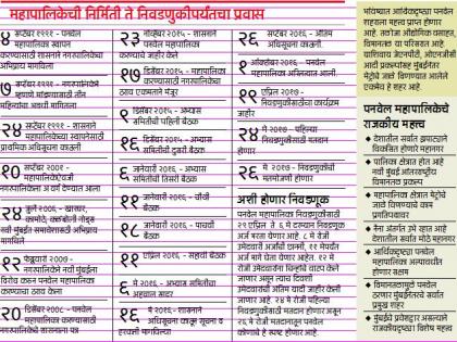 राज्यातील पहिली नगरपालिका असणाऱ्या पनवेलचे १ आॅक्टोबरला महापालिकेत रूपांतर झाले. २७ वी महापालिका असली तरी झपाट्याने विकसित होणारे देशातील एक क्रमांकाचे शहर म्हणून या परिसराचा देशभर नावलौकिक आहे. नवी मुंबई आंतरराष्ट्रीय विमानतळ, मेट्रो रेल्वे प्रकल्प, महत्त्वाकांक्षी नैना प्रकल्प याच परिसरात आहे. भविष्यात मुंबईनंतर देशातील सर्वात प्रमुख शहर पनवेलच असल्याने महापालिकेच्या निवडणुकीकडे सर्वच राजकीय पक्षांनी लक्ष केंद्रित केले आहे. पहिल्याच निवडणुकीमध्ये विजयाचा झेंडा फडकवायचा व पहिला महापौर आपल्याच पक्षाचा झाला पाहिजे यासाठी राजकीय पक्षांनी आॅक्टोबरपासूनच मोर्चेबांधणी सुरू केली आहे. पनवेल नगरपालिका, २९ महसुली गावे, सिडको विकसित परिसर अशा ११० हेक्टर परिसरामध्ये विखुरलेल्या महापालिकेच्या निवडणुकीसाठी २४ मे रोजी निवडणूक होणार आहे. २९ एप्रिलपासून उमेदवारी अर्ज भरण्याची प्रक्रिया सुरू होणार असून २६ मे रोजी मतमोजणीतून पनवेलवर सत्ता कोणाची याचा निर्णय होणार आहे. वास्तविक पनवेल महापालिका बनविण्यासाठी २५ वर्षांपासून प्रयत्न सुरू होते. नगरपालिकेने त्याविषयी ठरावही मंजूर केला होता. अखेर सर्वांच्या प्रयत्नाने १ आॅक्टोबर २०१६ ला महापालिकेची अधिकृत घोषणा झाली व सहा महिन्यांत पहिली सार्वत्रिक निवडणूक घोषित करण्यात आली आहे.