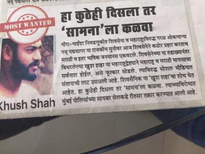 आज शिवसेनेचे मुखपत्र दैनिक 'सामना'त देखील मोस्ट वॉन्टेड या मथळ्याखाली हा खुश शहा कुठे कुणालाही दिसल्यास सामनाच्या कार्यालयास कळविण्याचे आवाहन केले होते. शुक्रवारी दुपारी १२ . ४० वाजताच्या दरम्यान अचानक जमा झालेल्या शिवसैनिक शहाच्या घरावर हल्लाबोल केला. मुंबई आणि ठाण्यातूनही आज काही शिवसैनिक शहापूरमध्ये दाखल झाले होते. मराठी द्वेषाचे कारणही विचारण्याचा प्रयत्न केला ; परंतू स्वतः खुश शहा हा घरात आढळून आला नाही. शिवसैनिकांच्या हल्ल्यात शहाच्या घराचे नुकसान झाले असून काही शिवसैनिकांविरोधात शहापूर पोलिस ठाण्यात गुन्हा दाखल करण्यात आला आहे.