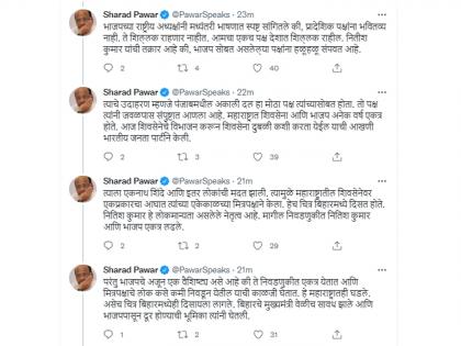 शरद पवार यांचा १७ ट्वीट्स करत भाजपाला इशारा, शिंदे गटालाही सुनावलं...
