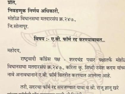 सिद्धी कदम यांना अनावधानाने एबी फॉर्म दिला गेला होता. तो रद्द करण्यात यावा, असे जयंत पाटील यांनी निवडणूक आयोगाला कळवले होते.