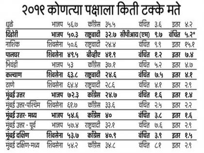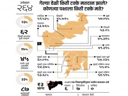 - मागील निवडणुकीत १३ पैकी भाजपने ६ (मुंबई उत्तर, मुंबई उत्तर पूर्व, मुंबई उत्तर मध्य, भिवंडी, दिंडोरी, धुळे) जागा जिंकल्या होत्या.