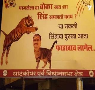 'माजलेला हा बोका स्वत:ला सिंह समजतो काय? या नकली सिंहाचा बुरखा आता फाडावाच लागेल' असे या पोस्टवर लिहीले असून मेहता यांना बोक्याच्या रुपात दाखवण्यात आहे. घाटकोपरमधील शिवसेनेच्या स्थानिक नेत्यांनी ही पोस्टर्स लावत मेहतांना चांगलाच दणका देत मुंबईत शिवसेनाच खरा वाघ असल्याचे ठसवण्याचाही प्रयत्न केला आहे.