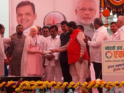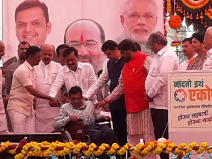 याशिवाय मुख्यमंत्री आणि इतर मान्यवरांच्या हस्ते सामाजिक न्याय विभागामार्फत दिव्यांगाना उपकरण वाटप, प्रधान मंत्री आवास योजनेतील लाभार्थींना प्रातिनिधिक स्वरूपात निधी वाटप, नगरपालिका शाळातील विद्यार्थ्यांना प्रातिनिधिक स्वरूपात टॅब वाटप आणि कृषी विभागामार्फत राष्ट्रीय फलोत्पादन अंतर्गत संभाजी भोसले यांना ट्रॅक्टरची प्रतिकात्मक चावी सुपूर्द करण्यात आली.