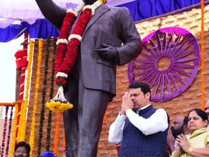 छत्रपती शिवाजी महाराज यांचे अश्वारूढ शिल्प व डॉ बाबासाहेब आंबेडकर यांचे पूणार्कृती शिल्प यांचे अनावरण व लोकार्पण सोहळा व सामाजिक अधिकारिता शिबीरांतर्गत सहाय्यक उपकरण वितरणाच्या कार्यक्रम ठिकाणी सकाळी मुख्यमंत्री देवेंद्र फडणवीस यांचे आगमन झाले.