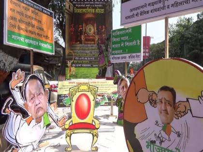 छिंदमला तृतीय पंथीयाच्या रुपात दाखविण्यात आले आहे. कानात डूल, नाकात नथ, ओठाला लिपस्टिक, गळ्यात चपलांचा हार घालण्यात आला आहे, असे त्याचे चित्र कटआऊटद्वारे रंगविण्यात आले आहे.