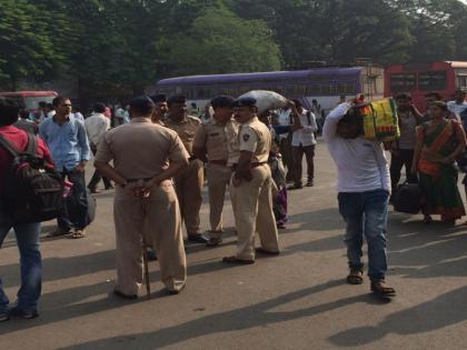 पुण्यातील काही बसस्थानकात चोख पोलिस बंदोबस्त आहे.