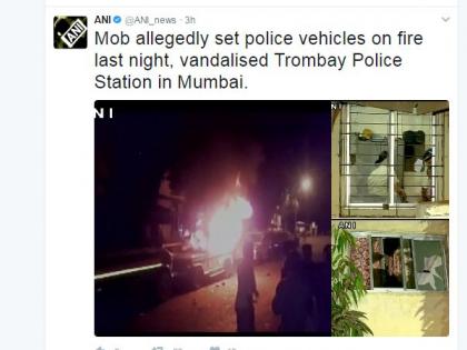 फेसबुकवर जातीय तेढ निर्माण होईल अशी पोस्ट टाकल्या करण्यावरून ट्रोमबे मध्ये रात्री दंगा झाला.100 ते 150 जांनाचा जमाव ट्रोमबे पोलीस स्टेशनवर चालून आला. जमावानी पोलीस स्टेशनवर दगड फेक केली तसेच पोलिसांची 2 वाहने जाळली. यात 5 ते 7 पोलीस जखमी झाले आहेत. प्रतिउत्तरात पोलिसांनी लाठी चार्ज केला तसेच हवेत गोळीबार केला.