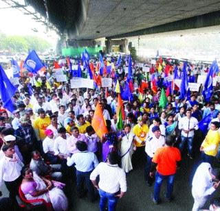 ठाणे- मराठा मोर्चानंतर शुक्रवारी शहरात बहुजन समाजाने क्रांती मोर्चा काढून विविध जातीजमातींच्या प्रलंबित मागण्यांकडे शासनाचे लक्ष वेधले. येथील तीनहातनाक्यावरून निघालेला हा मोर्चा गोखले रोड, ठाणे स्टेशन परिसरातील डॉ. बाबासाहेब आंबेडकर पुतळ्यास अभिवादन करून बाजारपेठेतून तलावपाळी, जांभळीनाक्यावर विसर्जित करण्यात आला. या दरम्यान ठिकठिकाणी एकतर्फी वाहतुकीसह चालकांना काही ठिकाणी वाहतूककोडींला सामोरे जावे लागले. ठाणे जिल्ह्यातील सामाजिक संघटनांच्या वतीने हा मोर्चा काढण्यात आला. यामध्ये कुणबी, ओबीसी, एससी, एसटी, डीएनटी, व्हीजेएनटी, एसबीसी, एमबीसी, अल्पसंख्याक मुस्लिम, जैन, लिंगायत, शीख, बौद्ध, ख्रिश्चन आदी कार्यकर्ते मोर्चात सहभागी झाले होते. भूमिपुत्रांच्या जमिनी घेणे बंद करा. अॅट्रॉसिटी कायद्याखालील आरोपींवर कठोर कारवाई करा. मुस्लिमांसाठी सच्चर समितीच्या शिफारशी लागू करा. शिष्यवृत्तीच्या रकमेत वाढ करा. सर्व जातीजमातींना कायद्याचे संरक्षण द्या. बहुजनांचे शिक्षण संपवण्याचे कटकारस्थान थांबवा. कर्मचाऱ्यांसाठी जुनी सेवानिवृत्ती योजना लागू करावी. ४५० स्क्वेअर फुटांचे हक्काचे घर मिळावे, आदी मागण्या करण्यात आल्या. या वेळी पोलिसांनी सुरक्षेच्या दृष्टीने चांगली भूमिका निभावली. चिंतामणी चौकात लावण्यात आलेले स्टेज अन्य ठिकाणी लावण्याची सूचना पोलिसांनी ऐन वेळी दिली.(छायाचित्र- विशाल हळदे)
