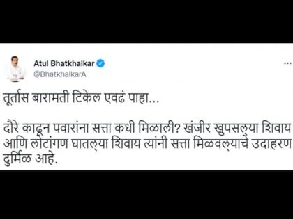 सुप्रिया सुळे यांना टोला लगावताना, दौरे काढून पवारांना सत्ता कधी मिळाली? असा सवाल भातखळकर यांनी केला आहे. "तूर्तास बारामती टिकेल एवढं पाहा... दौरे काढून पवारांना सत्ता कधी मिळाली? खंजीर खुपसल्या शिवाय आणि लोटांगण घातल्या शिवाय त्यांनी सत्ता मिळवल्याचे उदाहरण दुर्मिळ आहे," असे ट्विट अतुल भातखळकर यांनी केले आहे.