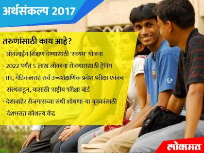 मुंबई, दि. 1 - मनरेगा, रस्ते बांधणी आणि मेट्रोसह इतर पायाभूत सुविधांचे प्रकल्प यावर केलेली भरीव तरतूद तसेच देशाला ‘इलेक्ट्रॉनिक्स उत्पादन केंद्र’ बनवण्याच्या घोषणेमुळे केंद्रीय अर्थमंत्री अरुण जेटलींनी भारतीय युवकांच्या पदरात भरभरून टाकण्याचा प्रयत्न केला आहे. जागतिक अर्थव्यवस्थेता डळमळीत असताना केंद्रीय अर्थसंकल्पातील तरतुदींमुळे भारतीय तरुणांसाठीच्या रोजगाराच्या संधीत वाढ होणार असल्याचे सूतोवाच अरुण जेटलींनी केले आहेत.
