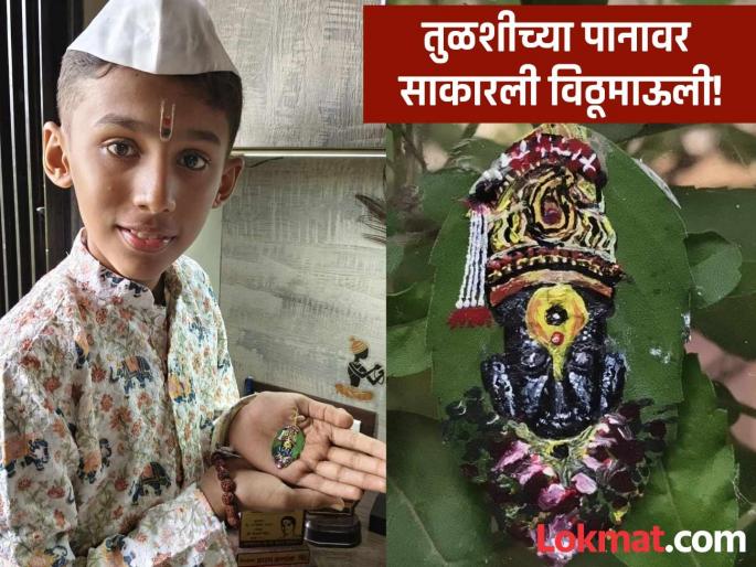 आषाढी एकादशीचं निमित्त पनवेल-कळंबोली येथील तेरा वर्षीय विद्यार्थ्याने चक्क तुळशीच्या पानावर महाराष्ट्राचे आराध्य दैवत असणाऱ्या विठुरायाचे चित्र साकारले आहे. नील कमलेश चौधरी याने हे चित्र साकारताना त्याने विशेष मेहनत घेतली आहे. विठुरायाच्या दर्शनाला काही भाविक जाऊ शकत नाहीत. मात्र, आपल्या कलेच्या माध्यमातून विठ्ठल भक्तांना आणि वारकऱ्यांना एक वेगळा आनंद देण्याचा त्याने प्रयत्न केला आहे. जवळपास दोन ते अडीच तासांच्या अथक प्रयत्नानंतर त्याने ही कलाकृती साकारली.
