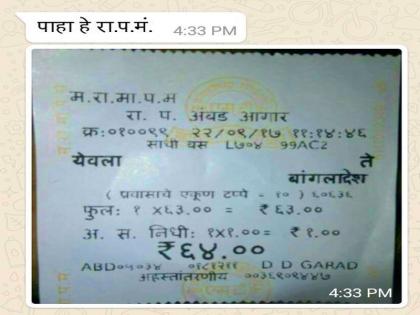 एसटी महामंडळाचे कर्मचारी हे पुरेशा सुविधांअभावी दिवस-रात्र प्रवाशांना सेवा देत आहेत़ मात्र, सोशल मीडिया व्हॉट्सअॅपवर व्हायरल झालेल्या या तिकिटामुळे अनेकांनी आश्चर्य व्यक्त केले. अर्थात, हे मूळ तिकीट आहे की यात कोणी खोडसाळपणा करून फेरबदल केलाय हा संशोधनाचा विषय आहे़