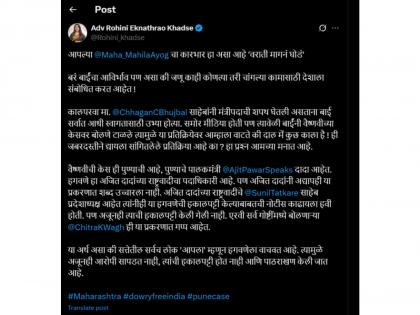 "आपल्या महिला आयोगाचा कारभार हा असा आहे 'वराती मागनं घोडं'. बरं, बाईंचा आविर्भाव पण असा की जणू काही कोणत्या तरी चांगल्या कामासाठी देशाला संबोधित करत आहेत. कालपरवा छगन भुजबळांनी मंत्रीपदाची शपथ घेतली असताना बाई सर्वात आधी स्वागतासाठी उभ्या होत्या. समोर मीडिया होती, पण त्यावेळी बाईंनी वैष्णवीच्या केसवर बोलणे टाळले. त्यामुळे या प्रतिक्रियेवर आम्हाला वाटते की 'दाल में कुछ काला है !' ही जबरदस्तीने द्यायला सांगितलेली प्रतिक्रिया आहे का? हा प्रश्न आमच्या मनात आहे," असे रोहिणी खडसे म्हणाल्या.