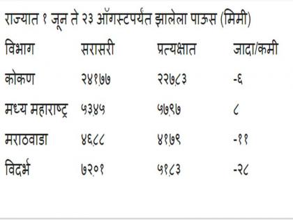 राज्यात १ जून ते २३ आॅगस्टपर्यंत झालेला पाऊस (मिमी)