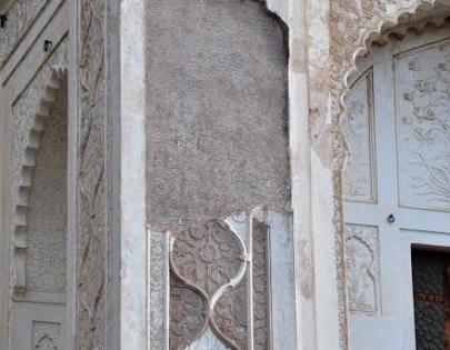 मकब-याच्या मुख्य प्रवेशद्वारापासूनच या शोकांतिकेची एक एक दुखरी बाजू समोर येऊ लागते. काळ्याशार पहाडाच्या पार्श्वभूमीवर एकेकाळी पांढरा शुभ्र स्फटिकासमान भासणारा मकबरा आता मात्र आसपास मनमोहक हिरवळ दाटूनही तेजोभंग झाल्यागत उभा आहे. त्याची चमकदार शुभ्रता आता लोप पावली आहे.