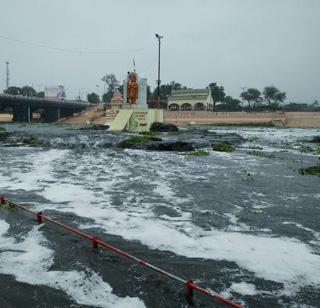 रामकुंडावर अडकलेल्या दोन भाविकांची अग्निशमन विभागाने सुटका केली. नदीकाठच्या गावांना सतर्कतेचा इशारा देण्यात आला आहे.