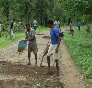 भामरागड, दि. २२ - मागील दोन वर्षांपासून रस्त्याच्या समस्येने त्रस्त असलेल्या राजाराम, भामनपल्ली गावातील नागरिकांनी रस्ता दुरूस्ती करून गावात बसफेरी सुरू करावी, यासाठी गुरूवारी पोलिसांच्या सहकार्याने श्रमदान केले राज्य सरकार या प्रश्नाकडे दुर्लक्ष करीत असल्याचा आरोप ग्रामस्थांनी निवेदनातून केला होता
