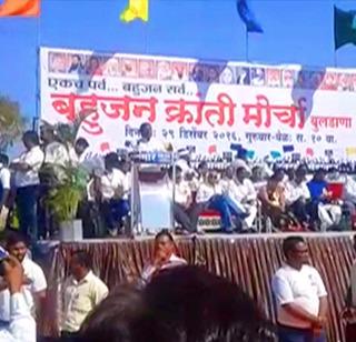 ऑनलाइन लोकमतबुलढाणा, दि. 29 - अॅट्रॉसिटी कायदा अधिक कडक करा, मुस्लीम समाजाला आरक्षण द्या, यासह बहुजन समाजाच्या विविध मागण्यांसाठी सामाजिक संघटनांच्या वतीने गुरुवारी येथे काढण्यात आलेल्या बहुजन क्रांती मोर्चाला प्रचंड प्रतिसाद लाभला. संपूर्ण महाराष्ट्रभर बहुजन समाजाच्या संविधानिक न्याय हक्कासाठी बहुजन क्रांती मोर्चाचे आयोजन करण्यात आले आहे. त्यानुसार बुलडाणा येथे २९ डिसेंबर रोजी आयोजित मोर्चाला सकाळी १० वाजता स्थानिक जयस्तंभ चौक येथे प्रारंभ करण्यात आला. कार्यक्रमाच्या अध्यक्षस्थानी बामसेफचे राष्ट्रीय अध्यक्ष वामन मेश्राम होते तर प्रमुख मार्गदर्शक म्हणून नाभिक समाज संघटनेचे राज्य उपाध्यक्ष दामोदर बिडवे, चर्मकार समाज संघटनेचे जिल्हाध्यक्ष प्रा. डी. आर. माळी, सदानंद माळी, बाबासाहेब जाधव, संयोजन समिती सदस्य तथा कामगार नेते अशोक दाभाडे, नितीन मोरे, अरिहंत पतसंस्थेचे अध्यक्ष जितेंद्र जैन, मुफ्ती अनिसउद्दीन, भटक्या विमुक्त संघटनेचे नेते समाधान गुऱ्हाळकर, जिजाऊ ब्रिगेडच्या जिल्हाध्यक्ष वनिता गायकवाड, के. ओ. बाविस्कर, सतीश पवार, अॅड. गणेश इंगळे, अर्जुनदादा गवई, मधुकरराव गवई, बाबासाहेब जाधव, दिलीपदादा जाधव, धनगर समाज संघटनेचे नामोडे, लक्ष्मण घुमरे यांच्यासह मान्यवरांची उपस्थिती होती.बहुजन क्रांती मोर्चासाठी सकाळी ८ वाजतापासून जिल्ह्यातील गावागावातून नागरिक सहभागी होत होते. जयस्तंभ चौक परिसरात उभारण्यात आलेल्या मुख्य स्टेजजवळ सकाळपासून येणारे नागरिक गोळा होत होते. सकाळी ११ वाजताच्या सुमारास शाहिरीचा कार्यक्रम घेण्यात आला. त्यानंतर मुख्य कार्यक्रमाला सुरूवात झाली. अध्यक्षीय भाषणातून वामन मेश्राम यांनी बहूजन समाजाच्या विकासासाठी सर्व बहूजनांनी एकत्र येण्याची गरज असल्याचे सांगितले. यावेळी ते म्हणाले, की बहूजन क्रांती मोर्चा काढल्यानंतर आपली लढाई संपणार नाही तर घरी गेल्यावर गावा- गावात बहूजन क्रांती मोर्चाच्या समित्या गठीत करा.आतापर्यंत शासनाने बहूजनांच्या विकास करण्यासाठी विविध समित्या गठीत केल्या. मात्र, त्या समित्यांनीच आमचा विश्वासघात केल्या. त्यामुळे आमचा त्या समित्यांवर विश्वास नाही. आता आपणच गावागावात समित्या गठीत करून न्याय हक्कासाठी लढा द्या, असे आवाहन केले. यावेळी नितीन मोरे, श्रावण माळी, वनिता गायकवाड, हाफीज कुरेशी, जितेंद्र जैन, प्रा. डी. आर. माळी, अलीसुद्दीन, अशोक दाभाडे, दिलीप जाधव, समाधान कुऱ्हाळकर यांनीही आपले मनोगत व्यक्त केले. कार्यक्रमाच्या शेवटी संविधान प्रास्तविकेचे वाचन करण्यात आले. दीपक मोरे व अमोल खरे यांनी संविधान प्रास्तविकेचे वाचन केले. संचालन कुणाल पैठनकर यांनी केले तर आभार प्रदर्शन वैशाली ठाकरे या