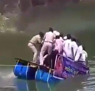कोल्हापूर, दि. 10 - घरगुती गणेश विसर्जनासाठी गेले असता तराफा उलटल्याने आमदार सुरेश हाळवणकर खदाणीत पडले. इचलकरंजीतील शहापूर खदाणीत ही घटना घडली. तराफ्यावर प्रमाणापेक्षा जास्त लोक उभे राहिल्याने तराफा उलटला आणि आमदार सुरेश हाळवणकर यांच्यासहित उपस्थित असलेले सर्वजण खदाणीत पडले. यावेळी आमदार सुरेश हाळवणकर यांच्यासहित त्यांची दोन मुलेदेखील होती. याव्यतिरिक्त अप्पर पोलिस अधिक्षक दिनेश बारी, डीवायएसपी विनायक नरळे, शाहपूरचे पोलिस निरीक्षक सतिश पवार, मुख्याधिकारी प्रशांत रसाळ, आरोग्य अधिकारी सुनिल दत्त संगेवार, नगरसेवक भाऊसो आवळे हेदेखील पाण्यात पडले. तराफा उलटल्यानंतर जवानांनी तात्राळ धाव घेत सर्वांना वाचवले. ज्यांना पोहता येत होते त्यांनी किनारा गाठला मात्र मुख्याधिकारी रसाळ यांना पोहता येत नसल्याने काहीवेळ त्यांनी गटांगळ्या खाल्ल्या.