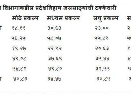 अकोला जिल्ह्यातील काटेपूर्णा प्रकल्प (९.१९ टक्के), बुलडाणा जिल्ह्यातील खडकपूर्णा (० टक्के), यवतमाळ जिल्ह्यातील अरुणावती (८.८४ टक्के), इसापूर (३.९३ टक्के), नागपूर जिल्ह्यातील गोसीखुर्द (१०.०३ टक्के), गडचिरोली जिल्ह्यातील दिना (० टक्के) आणि चंद्रपूर जिल्ह्यातील असोलामेंढा (० टक्के) या ७ जलाशयांमध्ये १० टक्केपेक्षा कमी जलसाठा आहे.