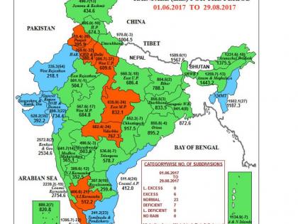 देशात पाच राज्यांमध्ये सरासरीपेक्षा अधिक पाऊस झाला असून, काही भागांमध्ये अजूनही पावसाची तूट आहे. जवळपास ७० टक्के भारतात सरासरी पाऊस झाला आहे. गुजरात, पश्चिम राजस्थान, तामिळनाडू आणि पुद्दुचेरी, आंध्रप्रदेशचा किनारपट्टीचा भाग आणि पूर्व भारतातील त्रिपुरा, मिझोरम आणि मणिपूर या राज्यांमध्ये सरासरीपेक्षा अधिक पाऊस झाला आहे. पंजाब, चंडिगढ, राजस्थानचा उत्तरेकडील भाग, दिल्ली, उत्तर प्रदेशातील पश्चिमेकडील भाग, मध्य प्रदेशाचा पूर्वेकडील भाग, महाराष्ट्रातील विदर्भ, दक्षिण कर्नाटक आणि केरळमध्ये पावसाची अद्याप तूट आहे. भारतात आतापर्यंत सरासरी 700.3 मिमि एवढा पाऊस अपेक्षित असतो. त्या तुलनेत 673.8 मिमि एवढा पाऊस झाला आहे.