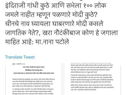 नाना पटोले म्हणाले की, चंद्रकांतदादा, या देशामध्ये नौंटंकीबाज कोण आहे हे जगाला माहिती आहे. पाकिस्तानचे दोन तुकडे इंदिरा गांधी यांनी सहजतेने केले. पाकिस्तानचे दोन तुकडे करणाऱ्या इंदिरा गांधी कुठे आणि सभेला १०० लोक जमले नाहीत म्हणून पळणारे मोदी कुठे? त्या काळामध्ये इंदिरा गांधींनी अमेरिका असो वा चीन असो, या सर्वांना बाजूला ठेवून देशाच्या एकात्मतेसाठी, देशाच्या संविधानिक व्यवस्थेसाठी आणि देशाला महासत्ता बनवण्यासाठी केलेला प्रयत्न देशातील सर्व लोकं जाणतात. इंदिरा गांधींसोबत नरेंद्र मोदींची तुलना करणे हे हास्यास्पद आहे. हे सर्व जनता समजत आहे. तुमची नौटंकी देशातील जनतेला समजली आहे, असा टोला नाना पटोले यांनी लगावला आहे.