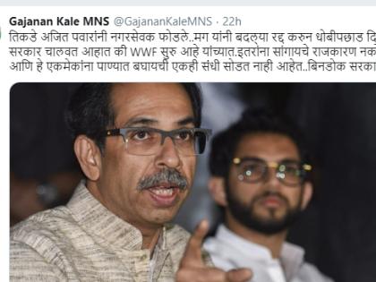 मुंबई - राज्यात सत्तेत एकत्र असणाऱ्या राष्ट्रवादी आणि शिवसेनेनं एकमेकांवर कुरघोडी करण्याचे प्रकार सुरु केले आहेत. स्थानिक पातळीवर अहमदनगर जिल्ह्यात शिवसेनेच्या 5 नगरसेवकांना उपमुख्यमंत्री अजित पवारांच्या उपस्थितीत राष्ट्रवादीत प्रवेश देऊन शिवसेनेला शह दिला. त्याची परतफेड म्हणून शिवसेनेने कल्याणमध्येराष्ट्रवादी काँग्रेसला मात दिली. आता, या अंतर्गत सत्तासंघर्षावर मनसेनं टीका केलीय. मनसेचे नेते गजानन काळे यांनी ट्विटरवरुन महाविकास आघाडी सरकारवर निशाणा साधला आहे.