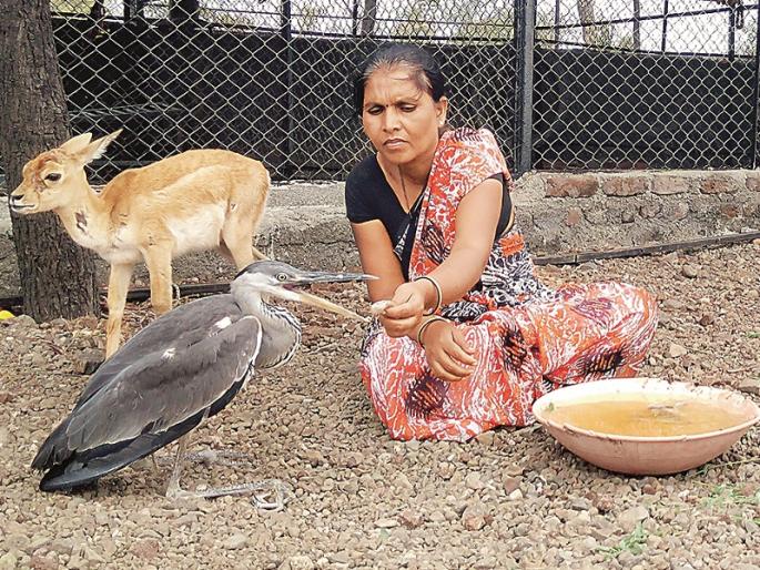 उपचारानंतर त्याला खाद्य देणे महत्त्वाचे होते. शिरूरवरून मासे आणले व त्याला खाऊ घालण्याचा प्रयत्न केला. त्याने एकही मासा खाल्ला नाही. दुसऱ्या दिवशी मात्र सृष्टीने त्याला तिच्या हातानं एक एक घास भरवत पोटभर मासे खाऊ घातले. त्यानंतर मात्र त्याला हाताने मासे खाऊ घालावे लागले नाहीत. त्याच्या पिंजऱ्यात असलेल्या पाण्याच्या कुंडीत लहानलहान मासे आम्ही टाकून देत असू. तोही भूक लागली की नदी, तलावातील पाण्यातील जसे मासे पकडून खातो असे तसे तो पाण्याच्या कुंडीतील मासे पटापट पकडून खात असे. त्याच्यासाठी ती पाण्याची कुंडी तलावाची भूमिका पार पाडत होती.