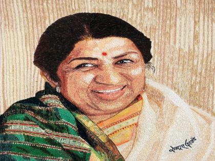 ‘अँकर’ स्पर्धेत रामदास काजवे यांनी भरतकाम करून काढलेले लता मंगेशकरांचे पुरस्कारप्राप्त चित्र.