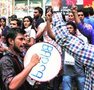 रात्रीच्या प्रेसिडेन्शियल डिबेटसाठी कॅम्पसमधल्या गंगा ढाब्यापासून थोड्याच अंतरावर मंडप घातला होता. प्रत्येक संघटनेचे विद्यार्थी डफ वाजवून जोरदार घोषणाबाजी करत होते. ज्या वादाच्या पार्श्वभूमीवर ही निवडणूक होत होती, ते पाहता मीडियाची उपस्थिती अपरिहार्यच होती. व्यासपीठावर निवडणूक आयोगाचे (जेएनयूच्या निवडणुका पार पाडण्यासाठी विद्यार्थ्यांंमधूनच निवडणूक आयोगाचीही निवड केली जाते) सदस्य बसले होते. अखेरीस दहाच्या सुमारास डिबेट सुरू झाले. यंदा अध्यक्षपदासाठी चार उमेदवार शर्यतीत होते. ‘बाप्सा’चा राहुल सोनपिंपळे. नागपूरचा असलेला राहुल हा जेएनयूमध्ये सोशॅलॉजीमध्ये पीएच.डी. करतो आहे. जेएनयूच्या निवडणुकीमध्ये नव्यानेच उदयाला येत असलेल्या संघटनेचा हा मराठी चेहरा चर्चेचा विषय होता. आयसा, एसएफआय आणि डाव्या संघटनांच्या युतीचा उमेदवार होता मोहितकुमार पांडे. एनएसयूआयचा उमेदवार होता सनी धीमान, तर एबीव्हीपीची उमेदवार होती जान्हवी ओझा. जेएनयूच्या कॅम्पसमध्ये पीएच.डी.च्या एका विद्यार्थिनीवर झालेल्या बलात्काराची बातमी गेले काही दिवस गाजत होती. बलात्काराचा आरोप आयसा संघटनेच्या विद्यार्थ्यावर होता. त्यामुळेच मुलींची मतं मिळवण्यासाठी एबीव्हीपीने एका मुलीला उमेदवारी दिल्याचंही बोललं जात होतं.